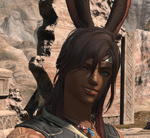 He had a traditional upbringing, taken at the age of fourteen to be trained as a warder. Swift and stealthy, he became a skilled bowman able to fell trespassers from far off with a single well aimed shot. Though as he traveled the edges of his territory, the songs of caravans and trailblazers would serenade him more than the duty he was charged. Of the songs and tunes he heard, many stayed with him and peppered his music as he serenaded the women of his village. His song tempted many into his section of the jungle, the dissonant melodies drawing in curious ears to their demise.At some point, Gale came into the possession of a ukulele that gave him the tool he needed to bring more life to his music. Taking from the travel songs he learned, he would mash up different tunes to create his own brand to entertain himself. Soon it wasn’t enough to simply pull from the same tired old songs he heard on the roads, and the wanderlust kicked in. Deciding to join a stray caravan, he offered his services as an entertainer to convince them to take him wherever it was they were traveling to... And so his journey began.Gale has traveled the breath of the star to hear the songs of many different cultures and creeds. From the allied tribes like the ixali and kobold, to the farther city states of Raz-at-han and Doma. It was only within the last twenty years that he settled down in Old Sharlayan to put his music knowledge to the test. Joining a rock band, he and his crew built DIY venues to disturb the peace with loud music and a mind to push the boundaries of just how much akasa affects bardic magic.Introduced to Blitzball through his time in Sharlayan, he has become an avid if not rabid fan. Having not the time to join a team, with his schedule dedicated to his bands, he does his best to watch the local teams practice. Enjoying a good amateur match when he can, he dons his face paint and team colors when the season matches begin.Recently, Gale has traveled back to Eorzea with his husband to wander once more and see how the world has changed. A chronic couch surfer, he has a vast network of contacts to help him get around. Where he goes next is anyone’s guess.