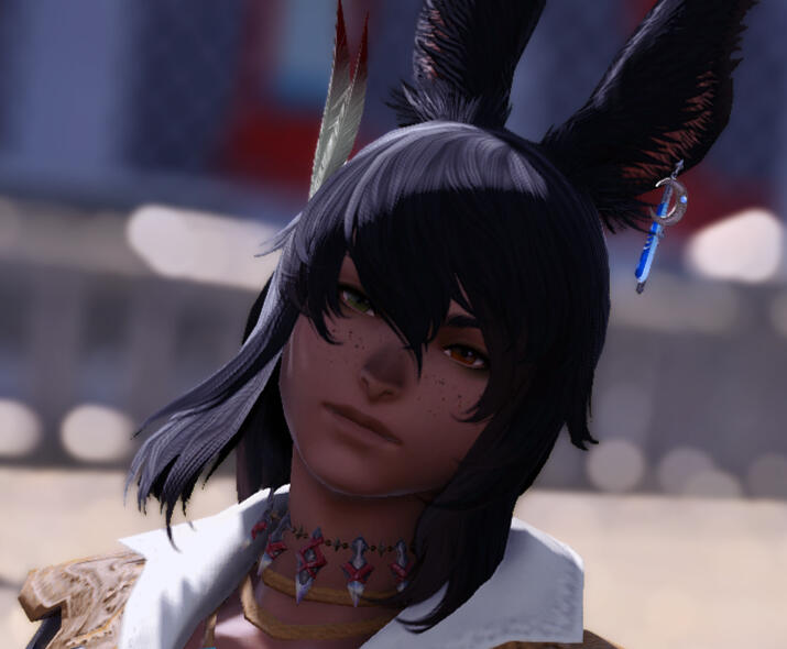 He had a traditional upbringing, taken at the age of fourteen to be trained as a warder. Swift and stealthy, he became a skilled bowman able to fell trespassers from far off with a single well aimed shot. Though as he traveled the edges of his territory, the songs of caravans and trailblazers would serenade him more than the duty he was charged. Of the songs and tunes he heard, many stayed with him and peppered his music as he serenaded the women of his village. His song tempted many into his section of the jungle, the dissonant melodies drawing in curious ears to their demise.At some point, Gale came into the possession of a ukulele that gave him the tool he needed to bring more life to his music. Taking from the travel songs he learned, he would mash up different tunes to create his own brand to entertain himself. Soon it wasn’t enough to simply pull from the same tired old songs he heard on the roads, and the wanderlust kicked in. Deciding to join a stray caravan, he offered his services as an entertainer to convince them to take him wherever it was they were traveling to... And so his journey began.Gale has traveled the breath of the star to hear the songs of many different cultures and creeds. From the allied tribes like the ixali and kobold, to the farther city states of Raz-at-han and Doma. It was only within the last twenty years that he settled down in Old Sharlayan to put his music knowledge to the test. Joining a rock band, he and his crew built DIY venues to disturb the peace with loud music and a mind to push the boundaries of just how much akasa affects bardic magic.Introduced to Blitzball through his time in Sharlayan, he has become an avid if not rabid fan. Having not the time to join a team, with his schedule dedicated to his bands, he does his best to watch the local teams practice. Enjoying a good amateur match when he can, he dons his face paint and team colors when the season matches begin.Recently, Gale has traveled back to Eorzea with his husband to wander once more and see how the world has changed. A chronic couch surfer, he has a vast network of contacts to help him get around. Where he goes next is anyone’s guess.